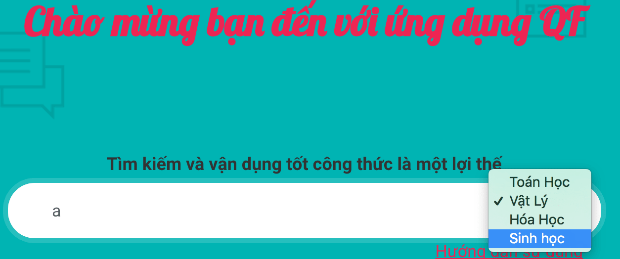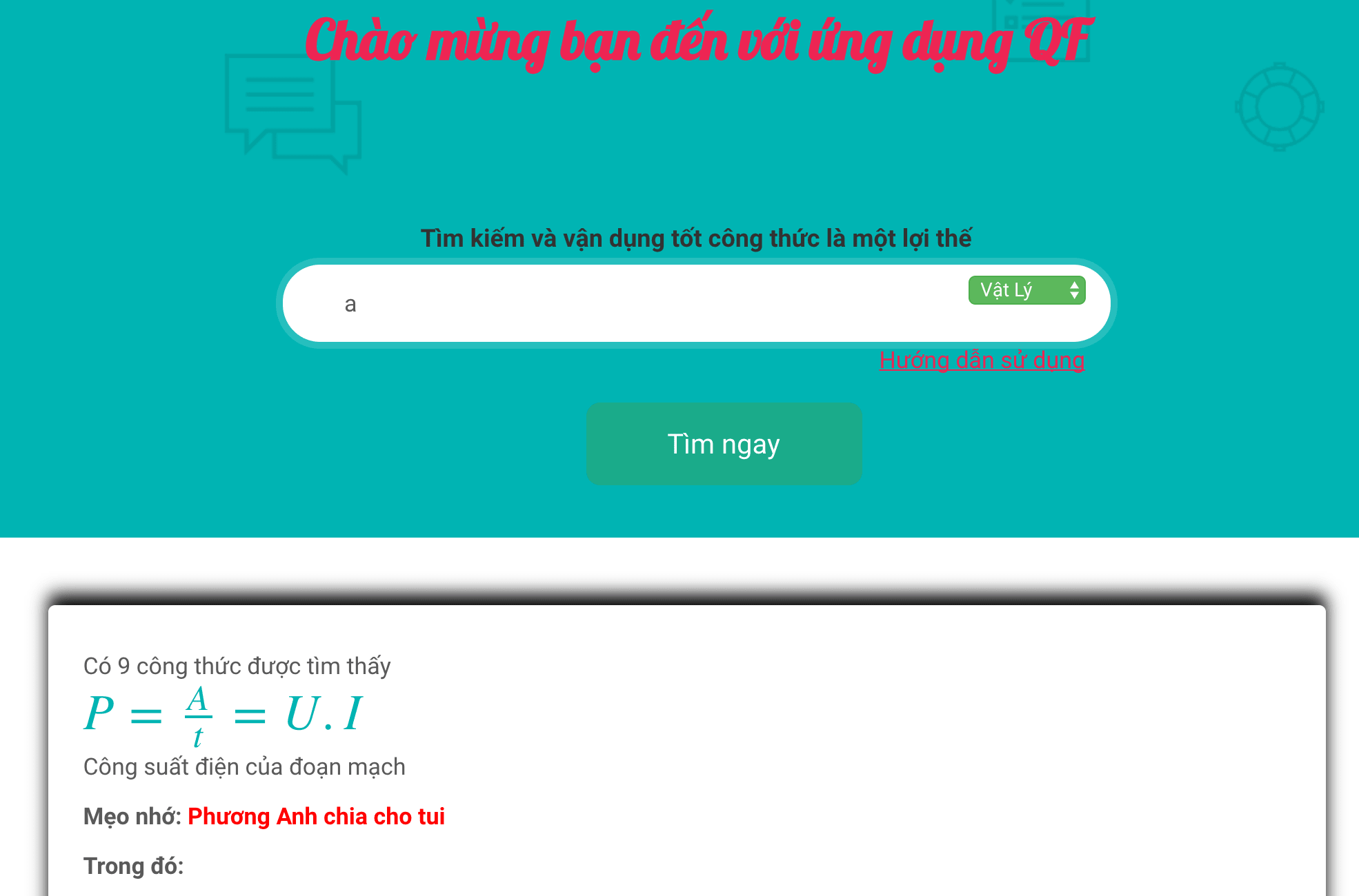QF là một ứng dụng web đơn giản và tiện lợi nhằm giúp học sinh có thể tra cứu một cách nhanh chóng công thức.
