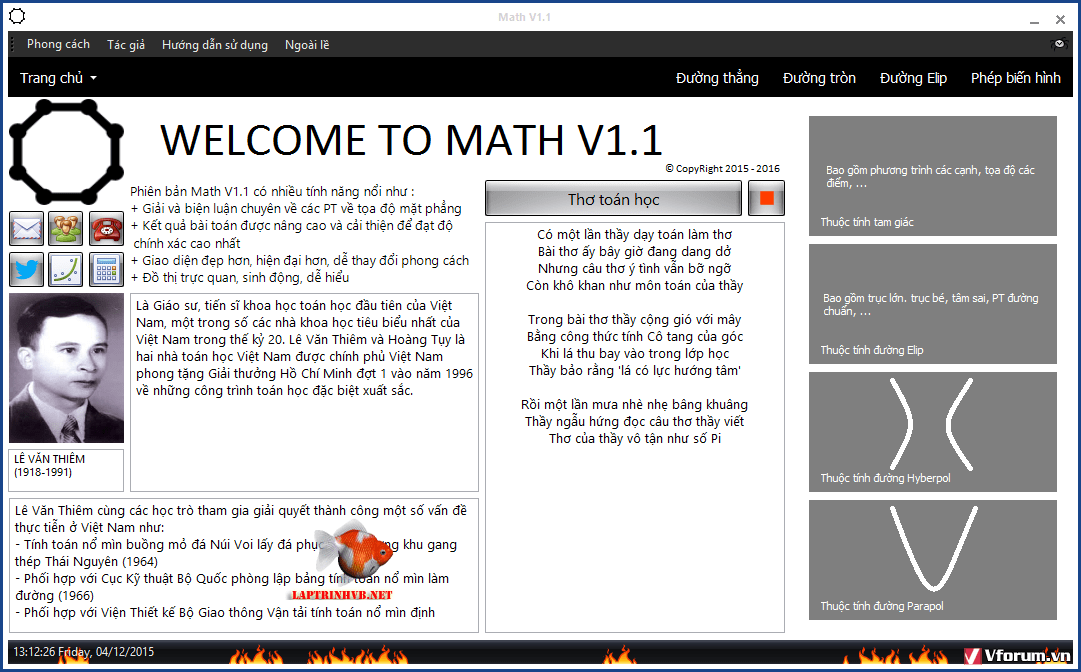 Math V1.1 là phần mềm được thiết kế và lập trình để giải quyết các nhu cầu học tập thực tiễn như học Toán và hỗ trợ việc biên soạn bài giảng điện tử, …