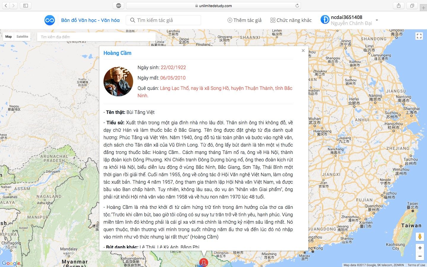 - Hệ thống bản đồ tác giả văn học.